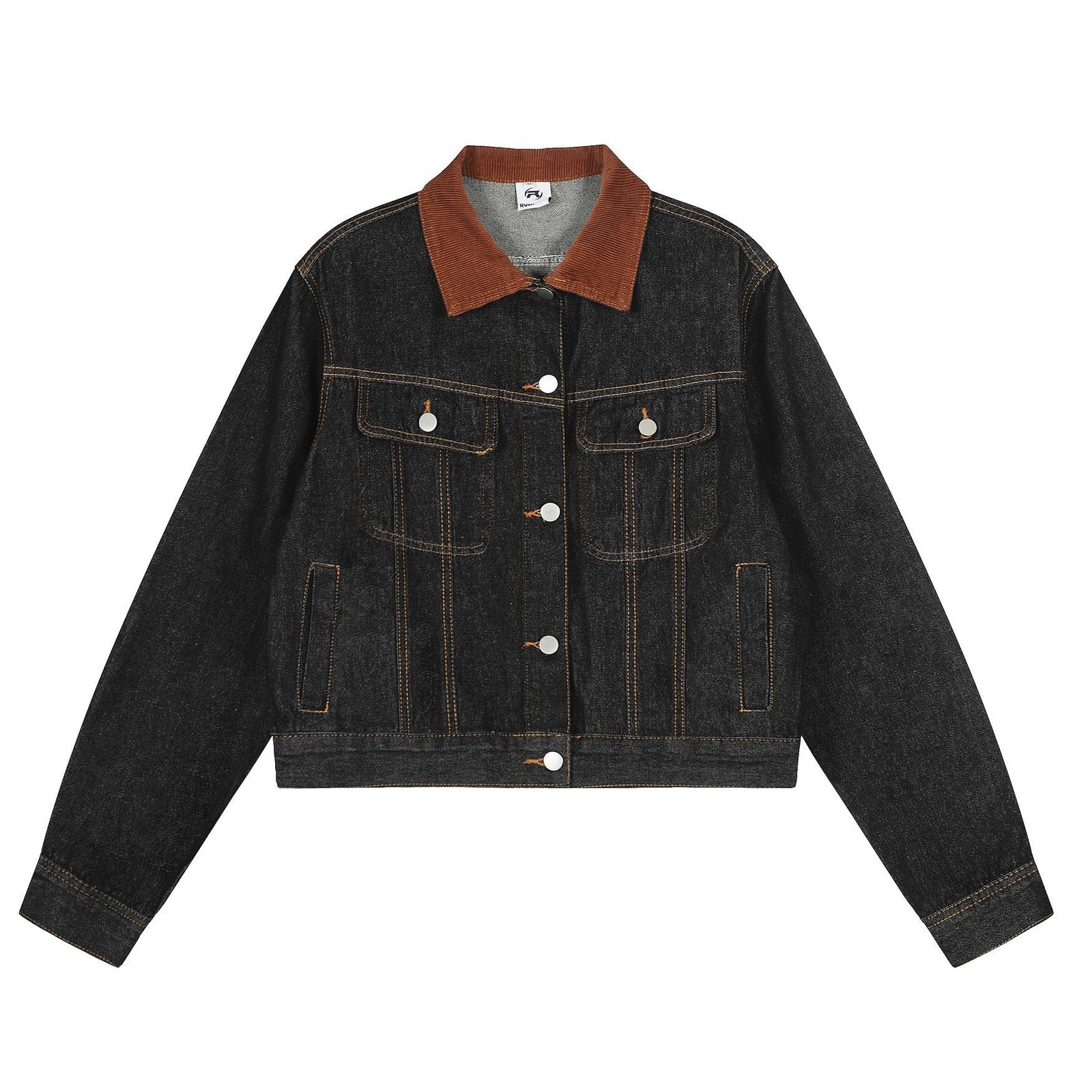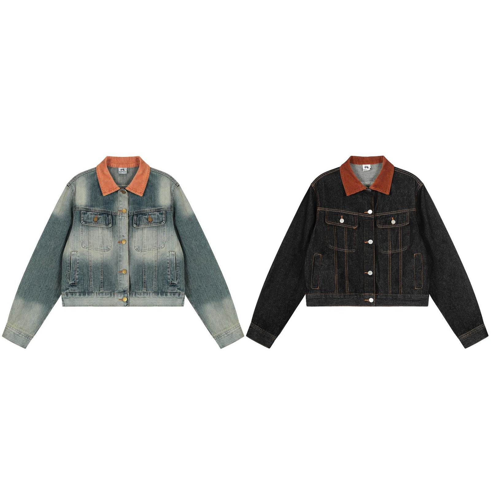 Vintage Washed Denim Jacket featuring a Corduroy Collar.