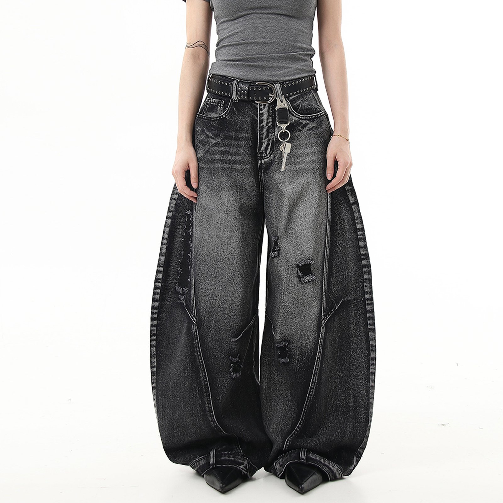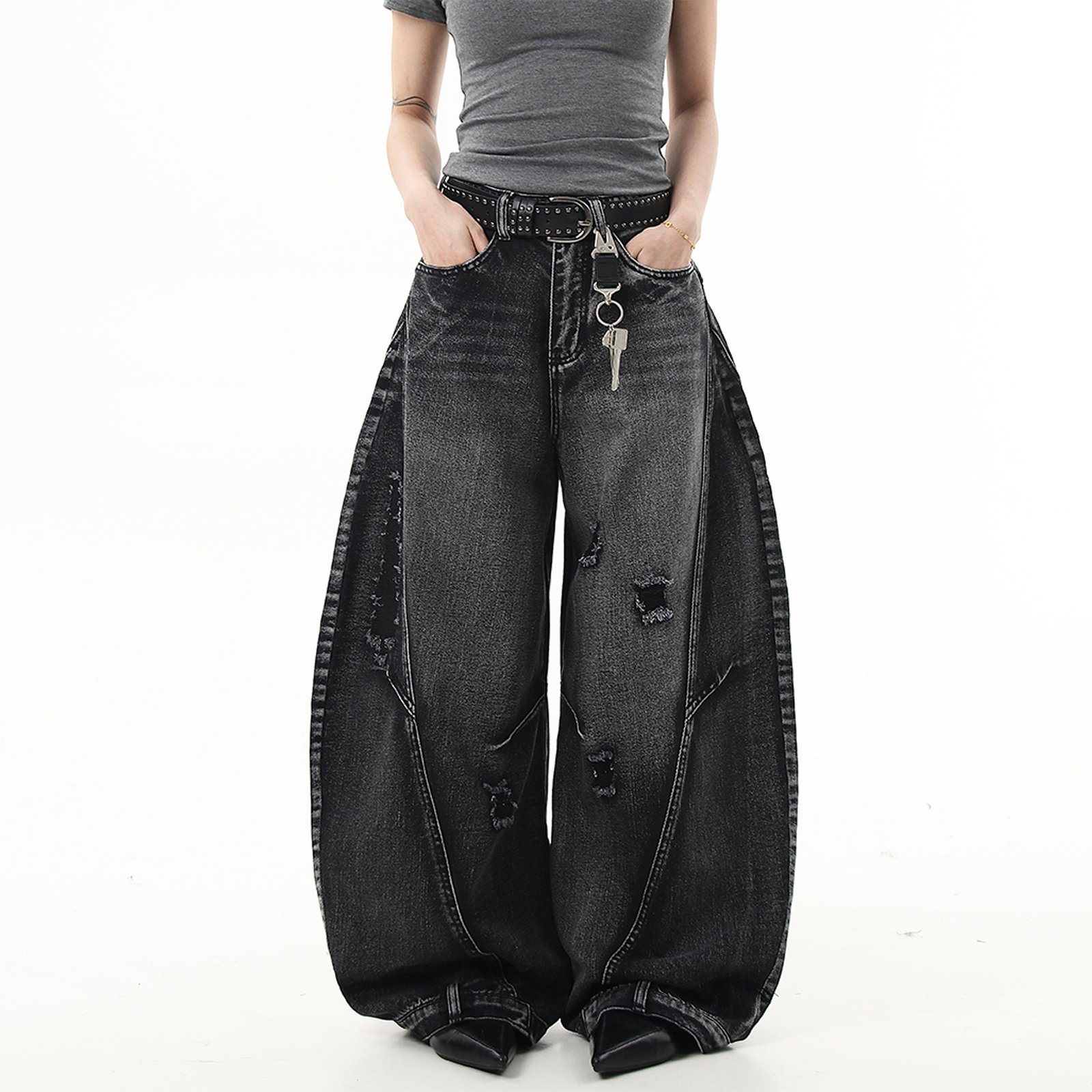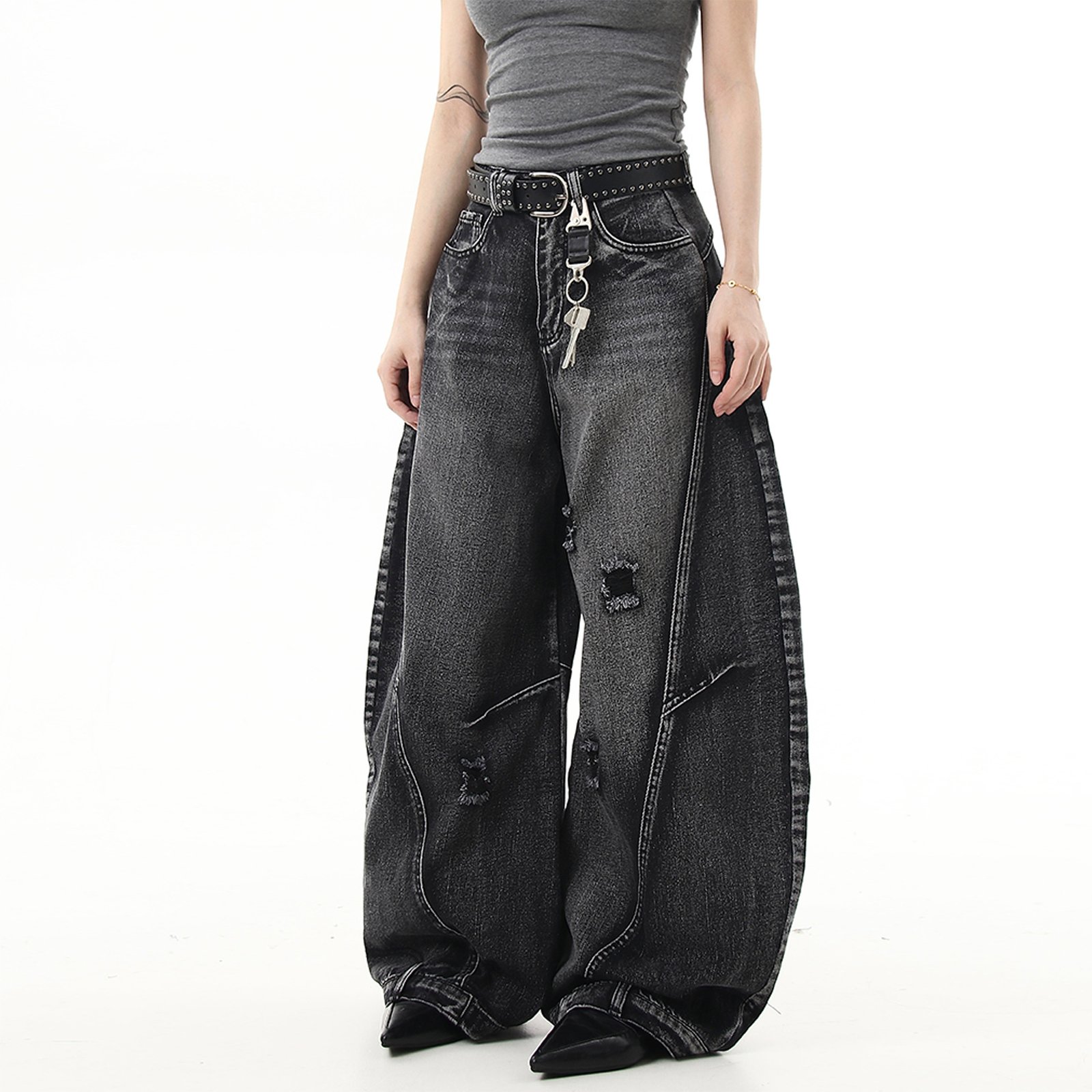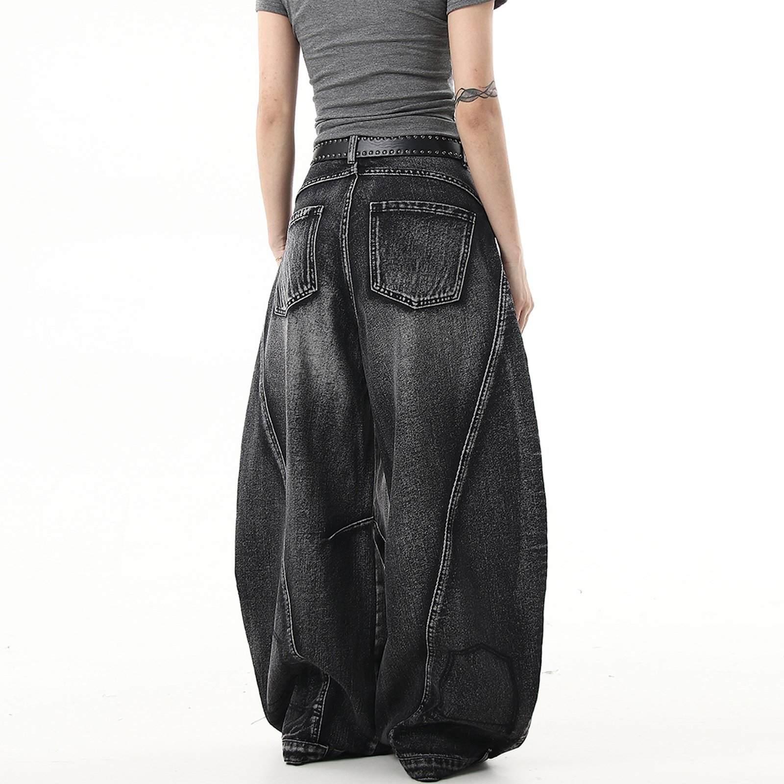 Vintage Washed Curved Knife Dad Jeans.