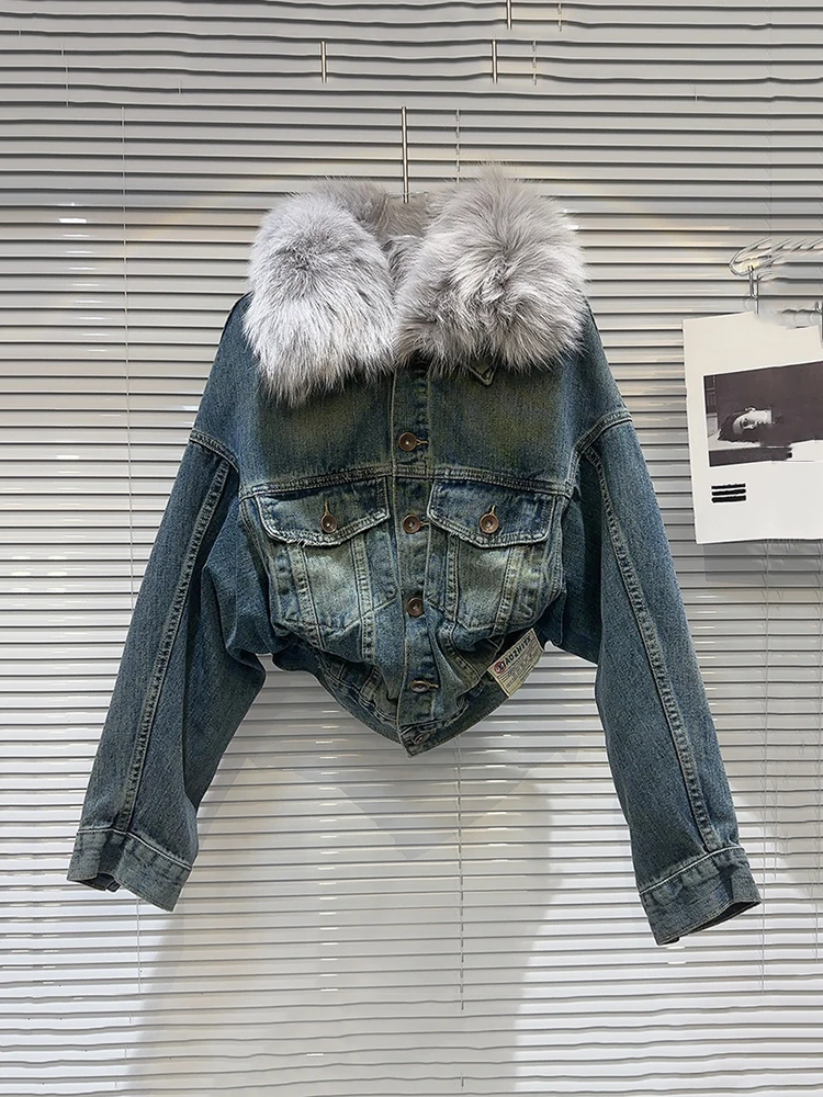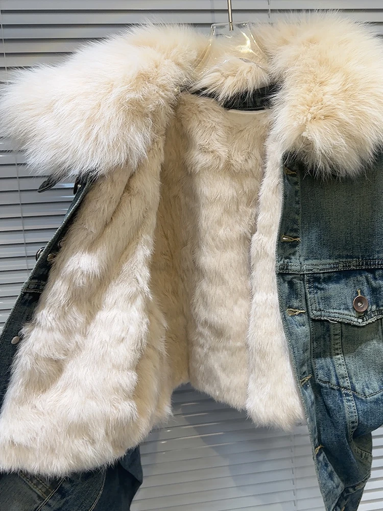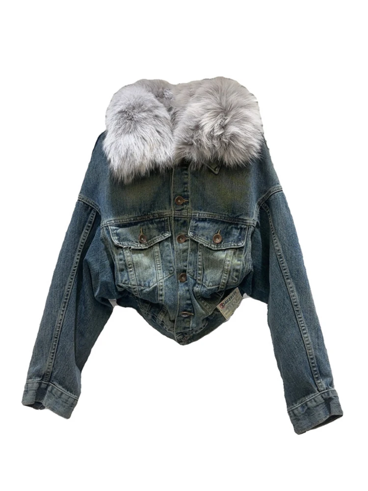 Women’s Patchwork Plush Denim Coat – Warm, Stylish & Vintage Inspired